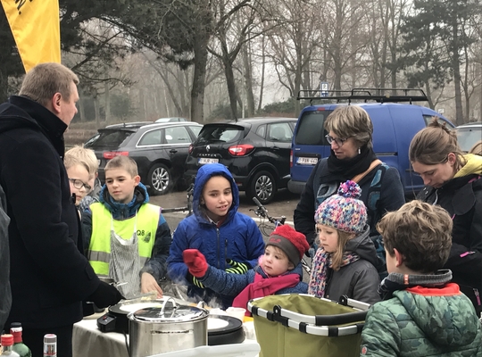 Burgemeester en Jong N-VA bakken pannenkoeken voor nieuwjaarszangertjes